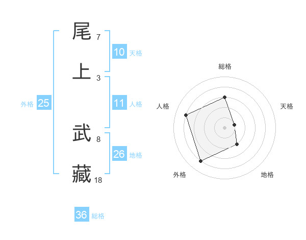 尾上 武藏さんの地格は26画の2点!