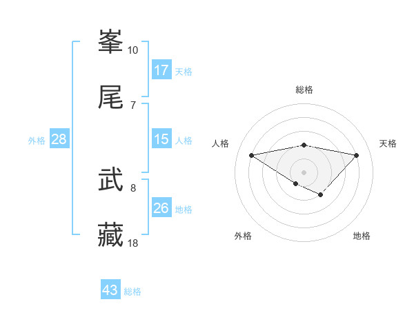 峯尾 武藏さんの天格は17画の4点!