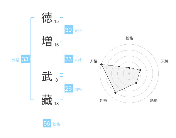徳増 武藏さんを姓名の画数から五運を鑑定