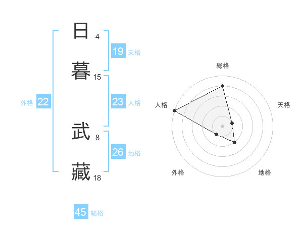 日暮 武藏さんを姓名の画数から五運を鑑定