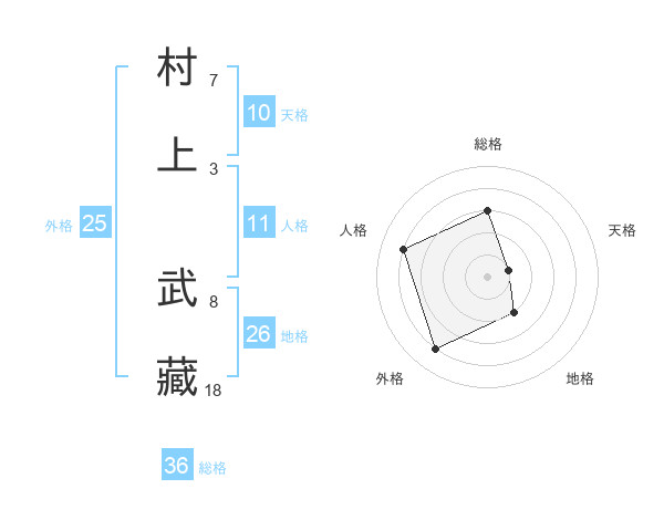 村上 武藏さんの地格は26画の2点!