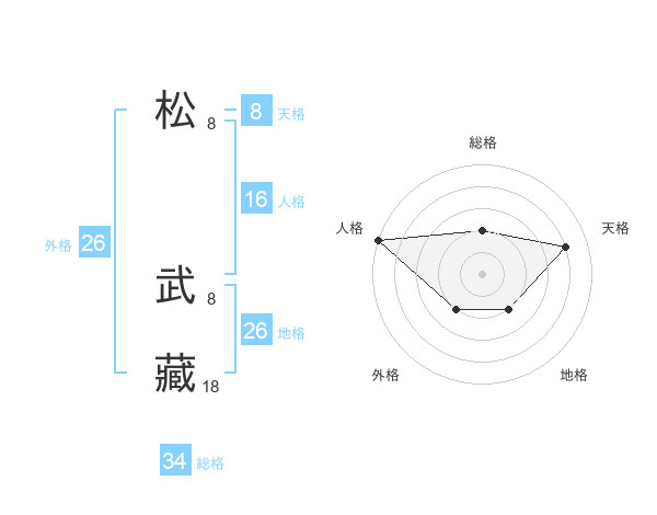 松 武藏さんを姓名の画数から五運を鑑定