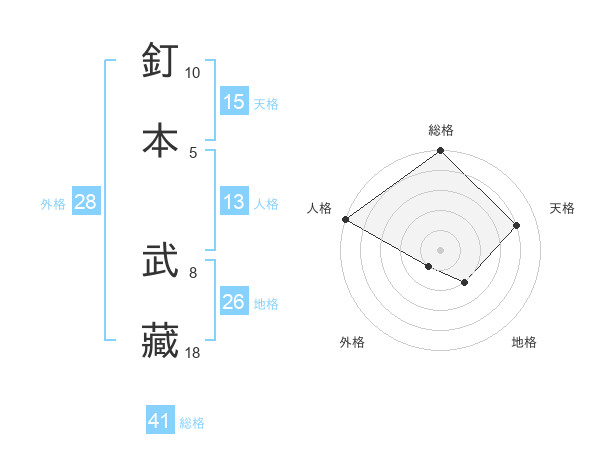 釘本 武藏さんを姓名の画数から五運を鑑定