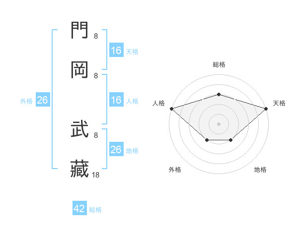 門岡 武藏さんの総格は42画の3点!
