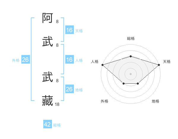 阿武 武藏さんの天格は16画の5点!