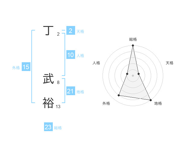 丁 武裕さんの総格は23画の5点!