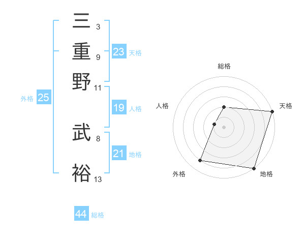 三重野 武裕さんを姓名の画数から五運を鑑定