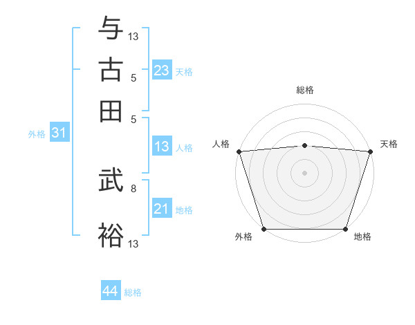 与古田 武裕さんを姓名の画数から五運を鑑定