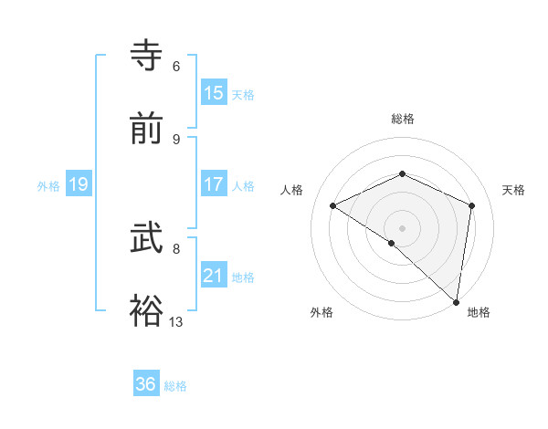 寺前 武裕さんを姓名の画数から五運を鑑定