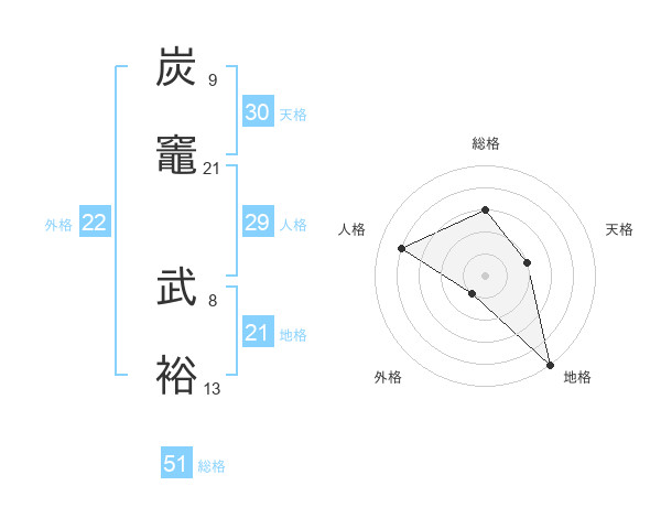 炭竈 武裕さんの総格は51画の3点!