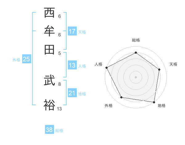 西牟田 武裕さんを姓名の画数から五運を鑑定