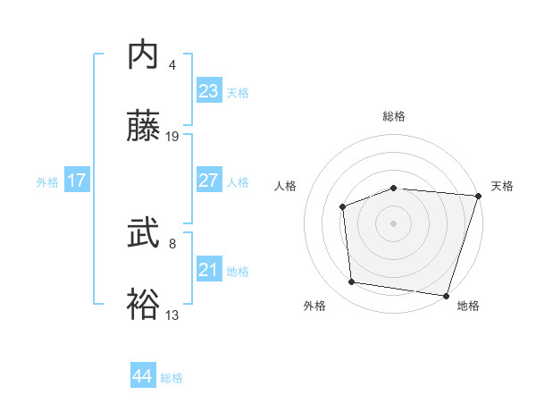 内藤 武裕さんを姓名の画数から五運を鑑定