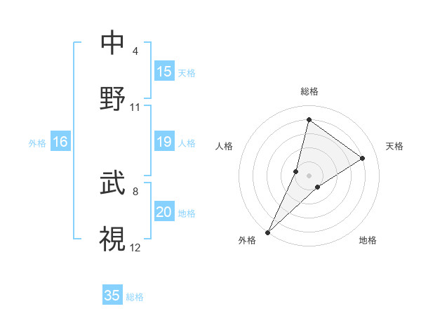 中野 武視さんの総格は35画の4点!