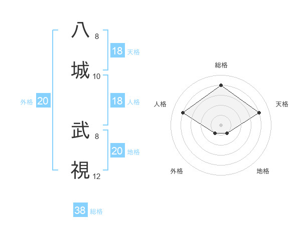 八城 武視さんの総格は38画の4点!
