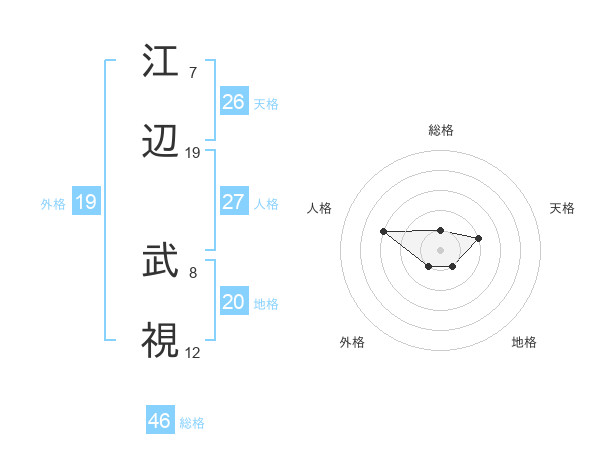 江辺 武視さんの総格は46画の1点!