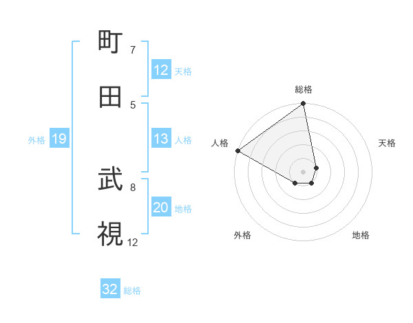 町田 武視さんの総格は32画の5点!