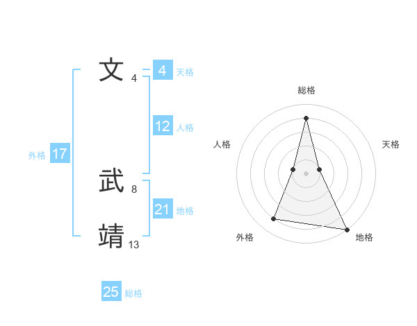 文 武靖さんの総格は25画の4点!