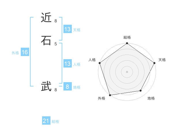 近石 武さんの総格は21画の5点!