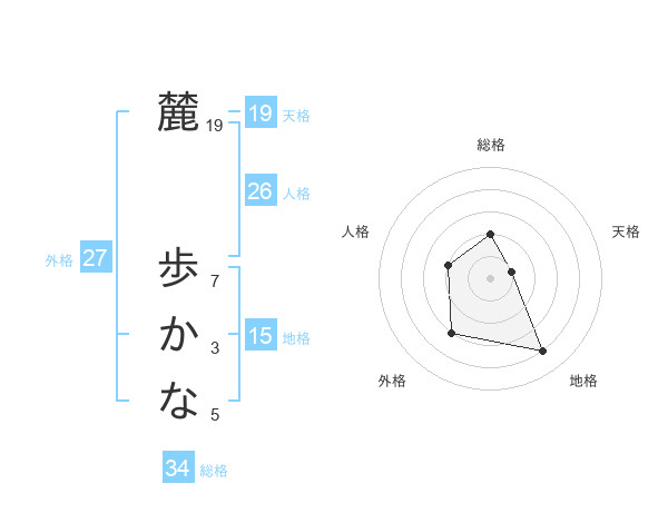 麓 歩かなさんの天格は19画の1点!
