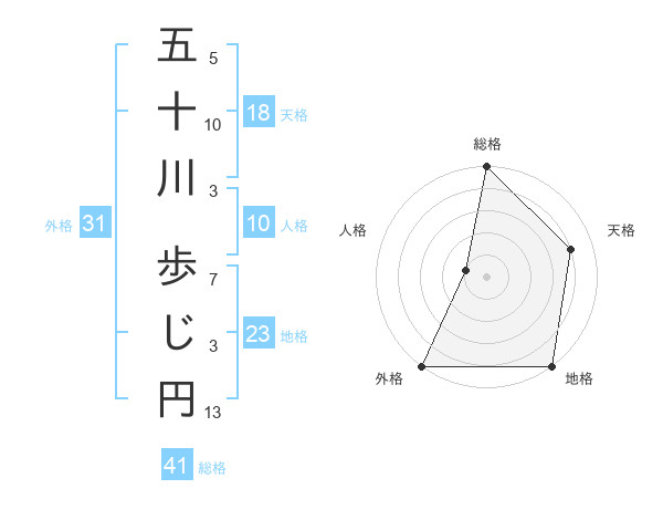 五十川 歩じ円さんを姓名の画数から五運を鑑定