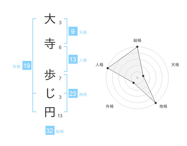 大寺 歩じ円さんの総格は32画の5点!