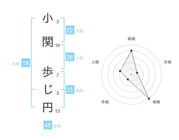 小関 歩じ円さんの総格は45画の4点!