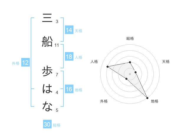 三船 歩はなさんを姓名の画数から五運を鑑定