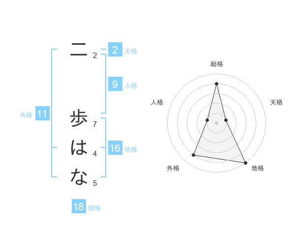 二 歩はなさんの外格は11画の4点!