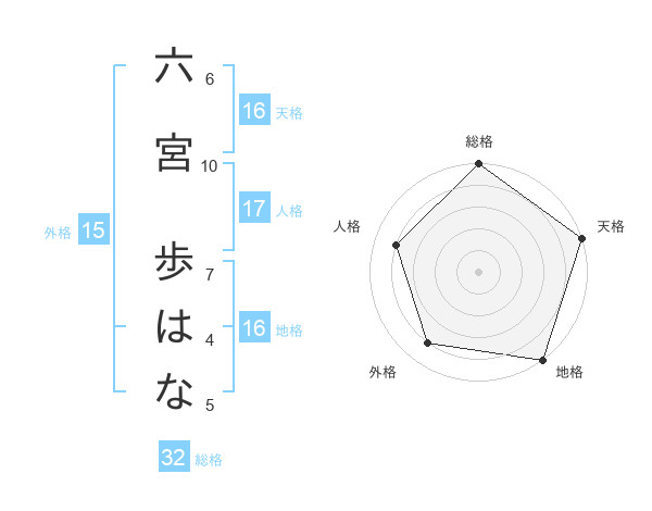 六宮 歩はなさんの総格は32画の5点!