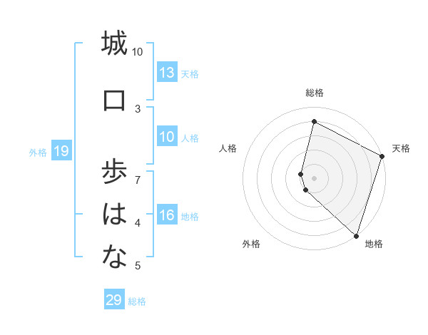 城口 歩はなさんを姓名の画数から五運を鑑定