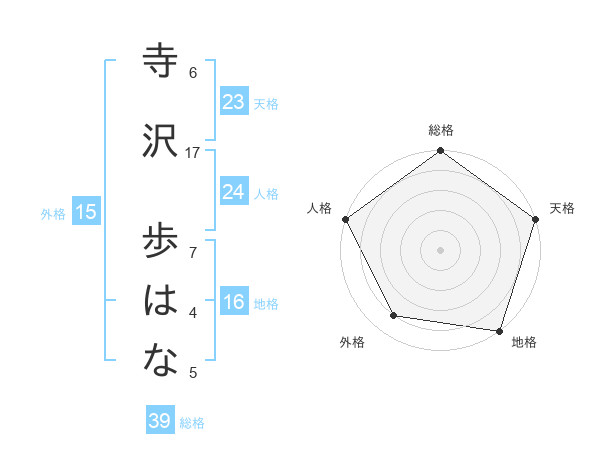 寺沢 歩はなさんの天格は23画の5点!