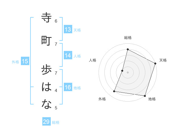 寺町 歩はなさんを姓名の画数から五運を鑑定