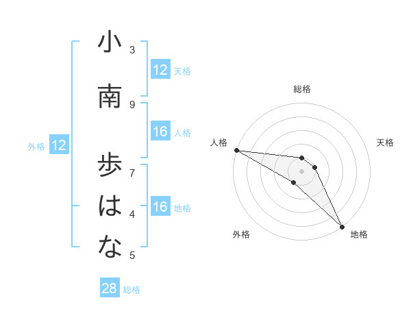 小南 歩はなさんを姓名の画数から五運を鑑定