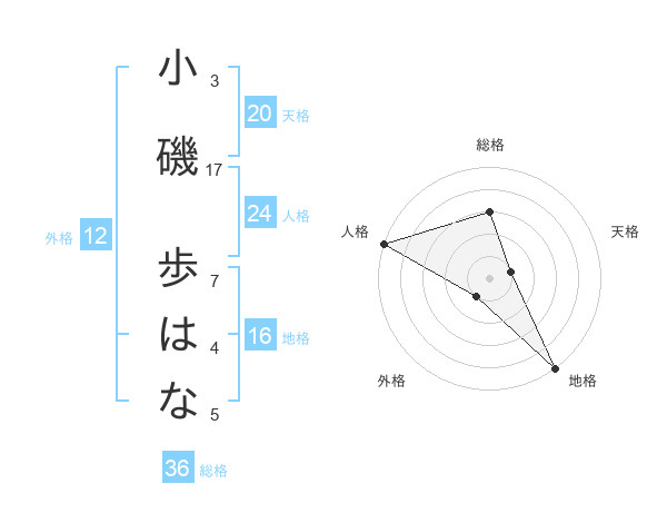 小磯 歩はなさんを姓名の画数から五運を鑑定