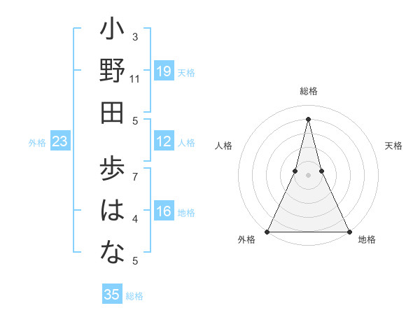 小野田 歩はなさんの天格は19画の1点!