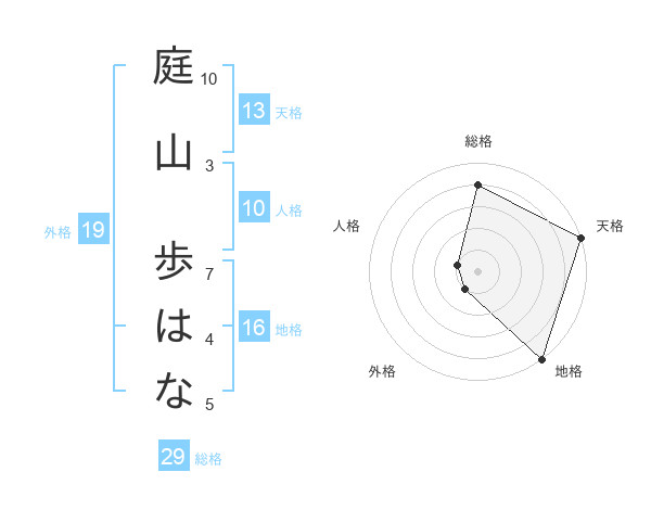 庭山 歩はなさんを姓名の画数から五運を鑑定