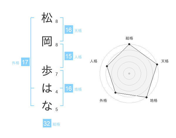 松岡 歩はなさんを姓名の画数から五運を鑑定