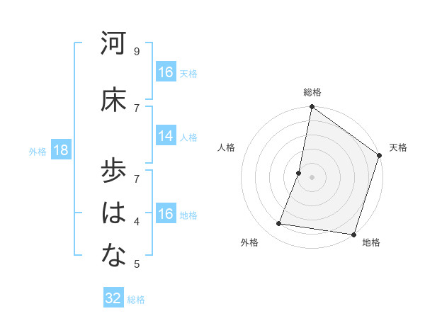 河床 歩はなさんの地格は16画の5点!