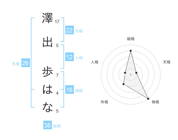 澤出 歩はなさんを姓名の画数から五運を鑑定