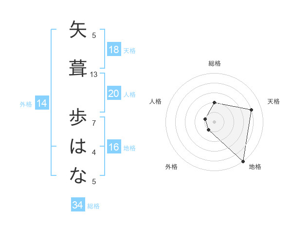 矢葺 歩はなさんを姓名の画数から五運を鑑定