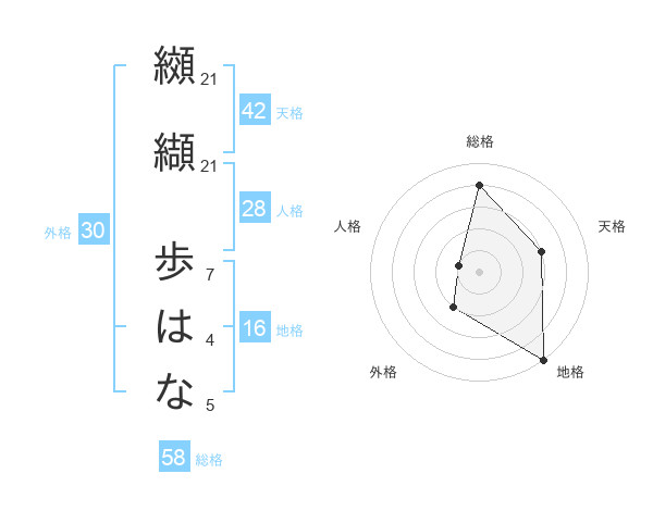 纐纈 歩はなさんを姓名の画数から五運を鑑定