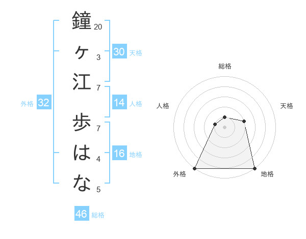 鐘ヶ江 歩はなさんの外格は32画の5点!