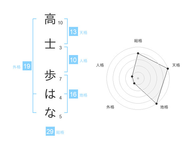高士 歩はなさんの天格は13画の5点!