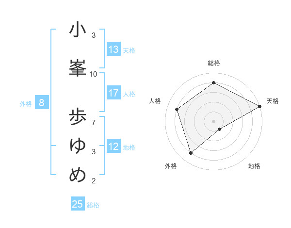 小峯 歩ゆめさんを姓名の画数から五運を鑑定