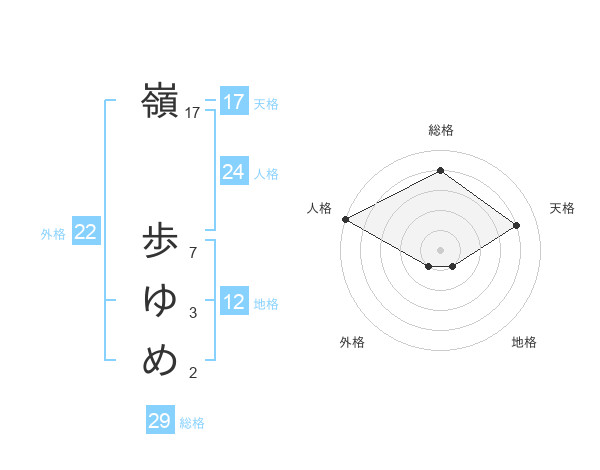 嶺 歩ゆめさんの天格は17画の4点!