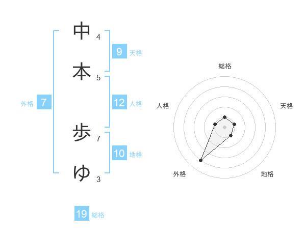 中本 歩ゆさんの外格は7画の4点!