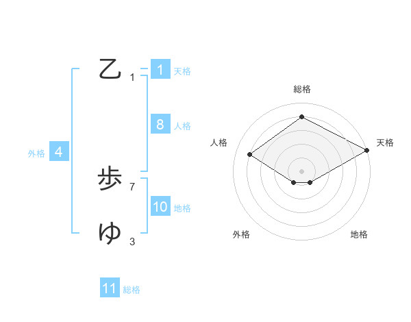 乙 歩ゆさんの総格は11画の4点!