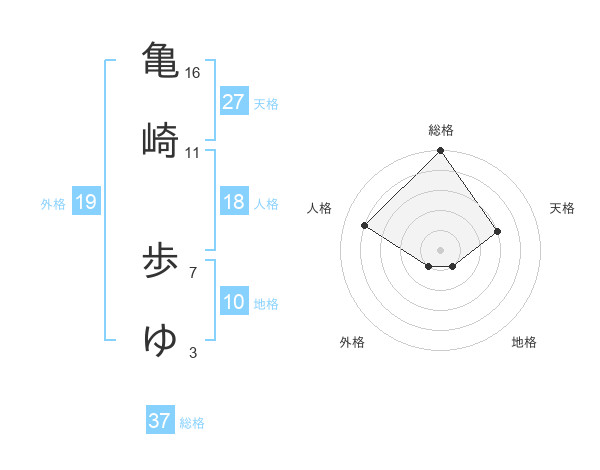 亀崎 歩ゆさんの総格は37画の5点!