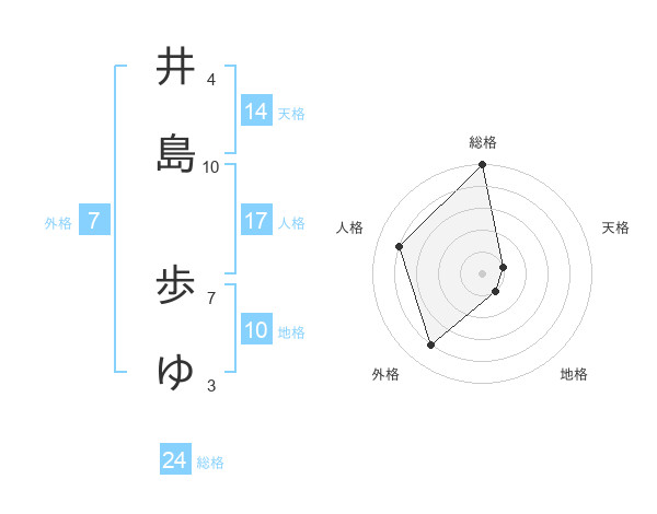 井島 歩ゆさんの総格は24画の5点!