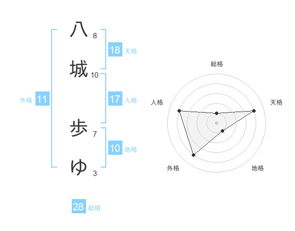 八城 歩ゆさんの天格は18画の4点!